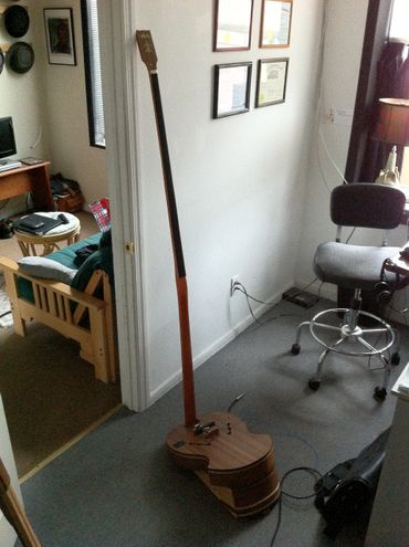 The Studivarious is a three and a half octave, Single String Bass that I have designed and performed with since the last century. It began on the subway in NYC, the A Train platform at 34th Street...performing on a washtub bass, playing one song...Take The A Train...it has developed some...the new one is in the center.